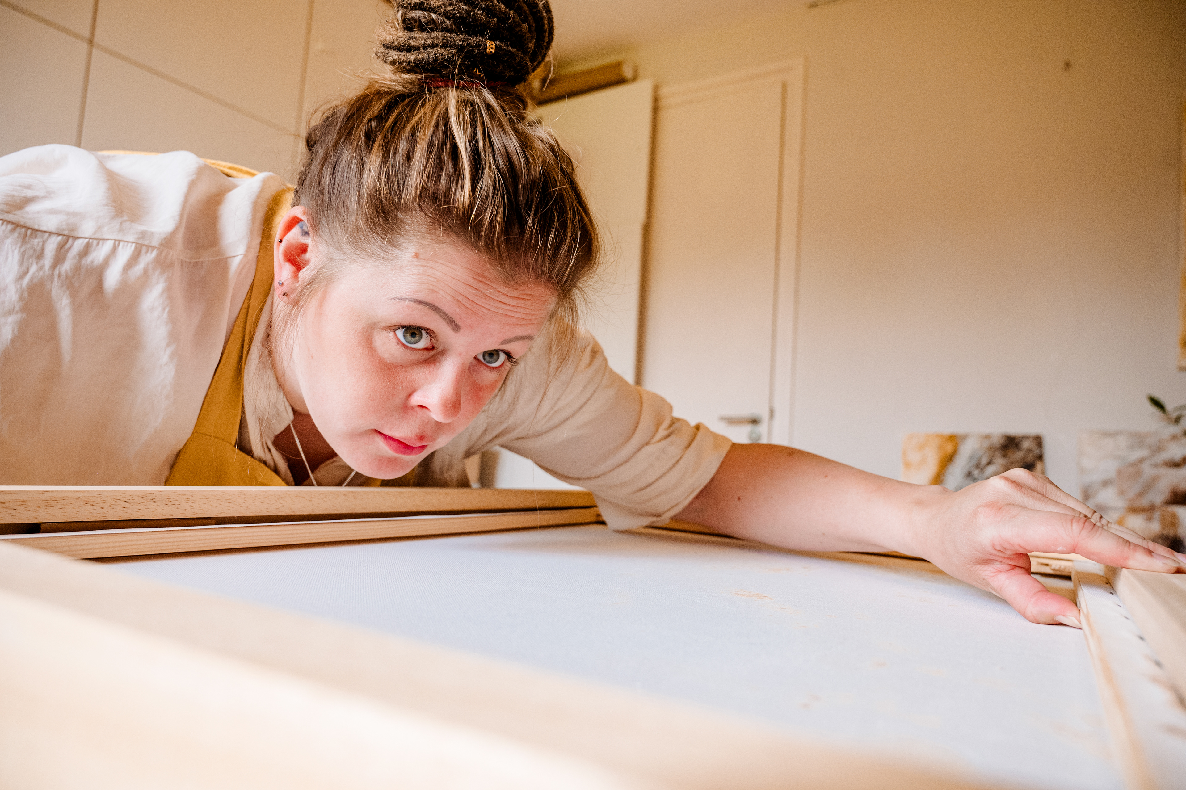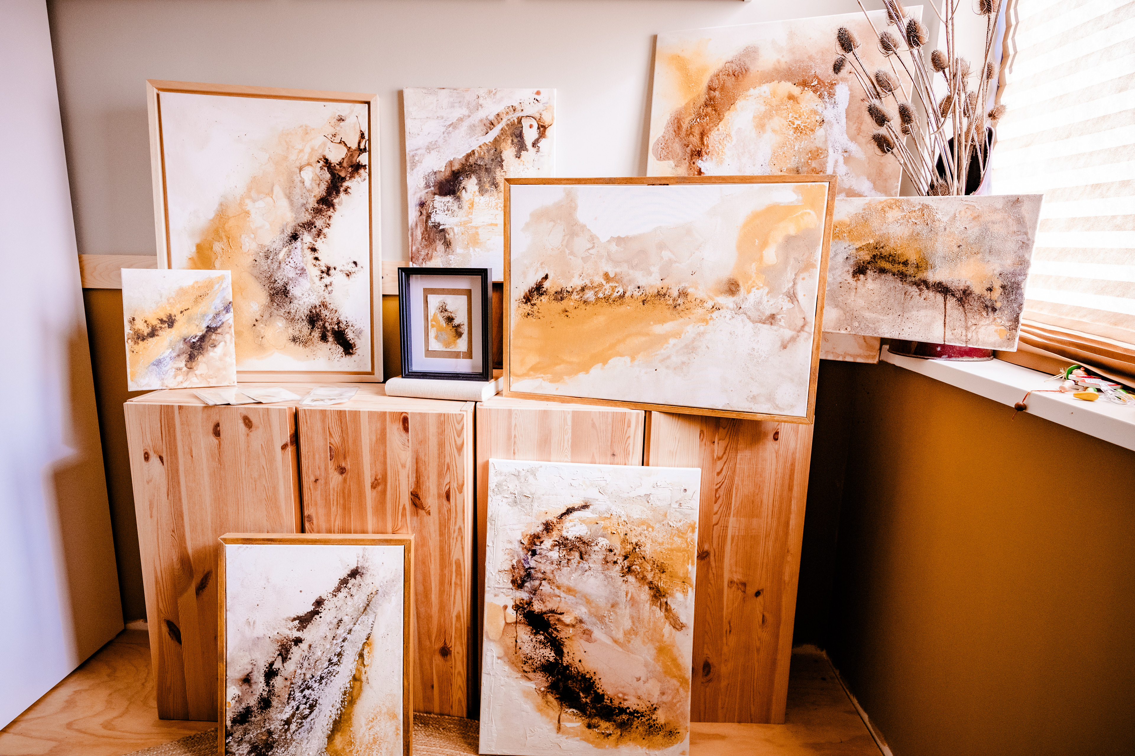 Schoonheid in imperfectie. Mijn schilderijen zijn niet glad of perfect. Ik werk met texturen en pigmenten die ik soms letterlijk uit de modder van een weiland maak. Ik volg mijn intuïtie en geloof in de kracht van het tastbare. Natuur, textuur en handgemaakte lijsten die soms heerlijk 'funky' maten hebben. Abstractie met gevoel.